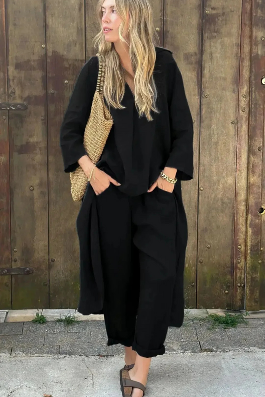 Ensemble raffiné incarnant l’élégance urbaine et le minimalisme contemporain